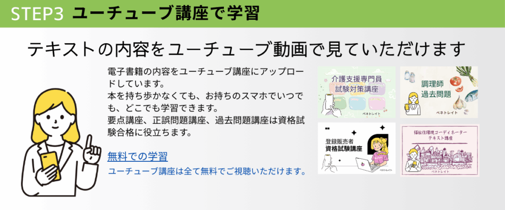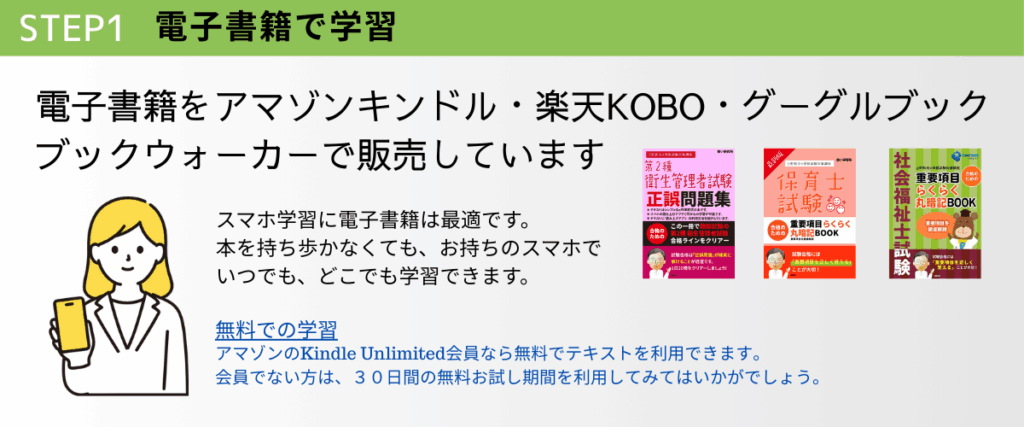 各資格試験は、広い分野の学習が必要です。専門職の試験を受ける方の多くは、お仕事をもっているようです。隙間時間を活用して学習することが大切です。スマホ学習もできますのでご活用ください。