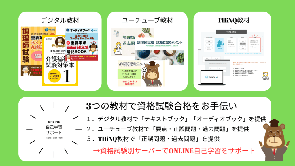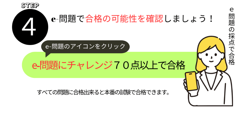 ペネトレイトの教材は、3ステップ学習で資格試験に合格出来るように作成しています。e-ラーニング教材では合格出来る実力が付いたか確認できるように作成しています。問題を解いてみて70点以上常にとれるようになったら本番でも大丈夫です。合格出来るように教材をご利用ください。